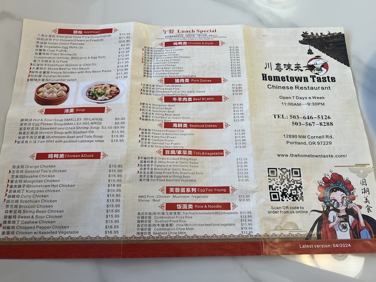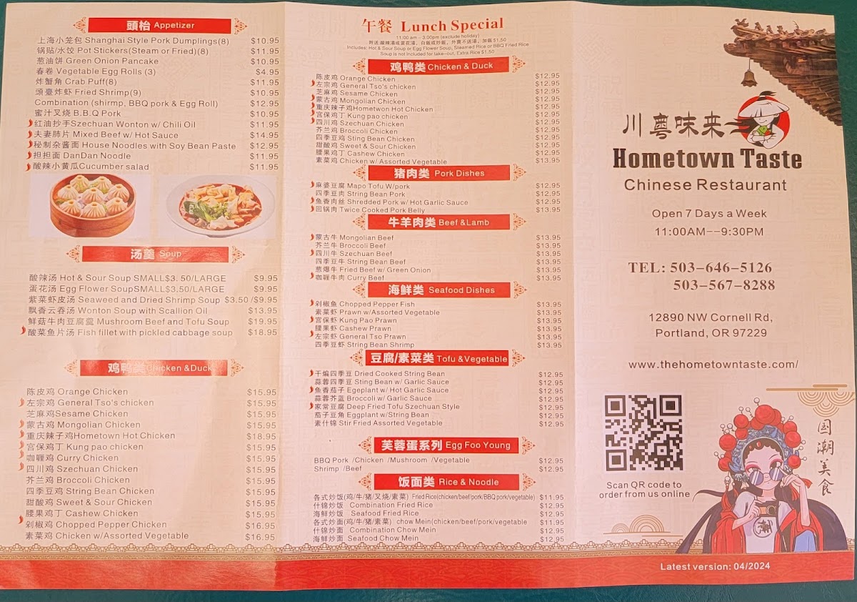 The menu at Hometown Taste features an array of traditional and contemporary Chinese dishes, complemented by a selection of beverages typical of a bar setting. It is organized into several distinct sections to assist diners in navigating the offerings efficiently.
